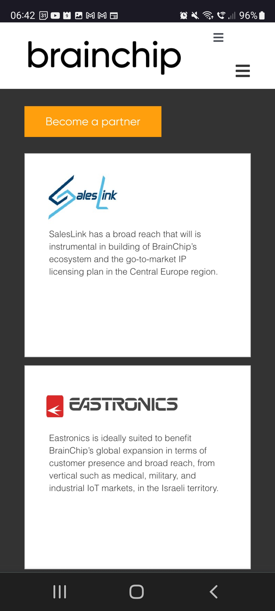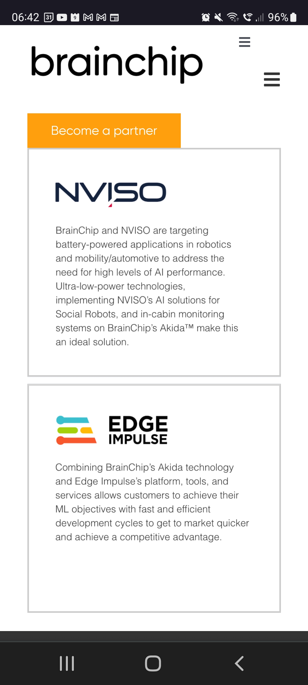 BrainChip is partnering with Arm, the leading technology provider of processor IP [intellectual property], to provide the most advanced solutions to make sensor products faster, smarter, and safer.
