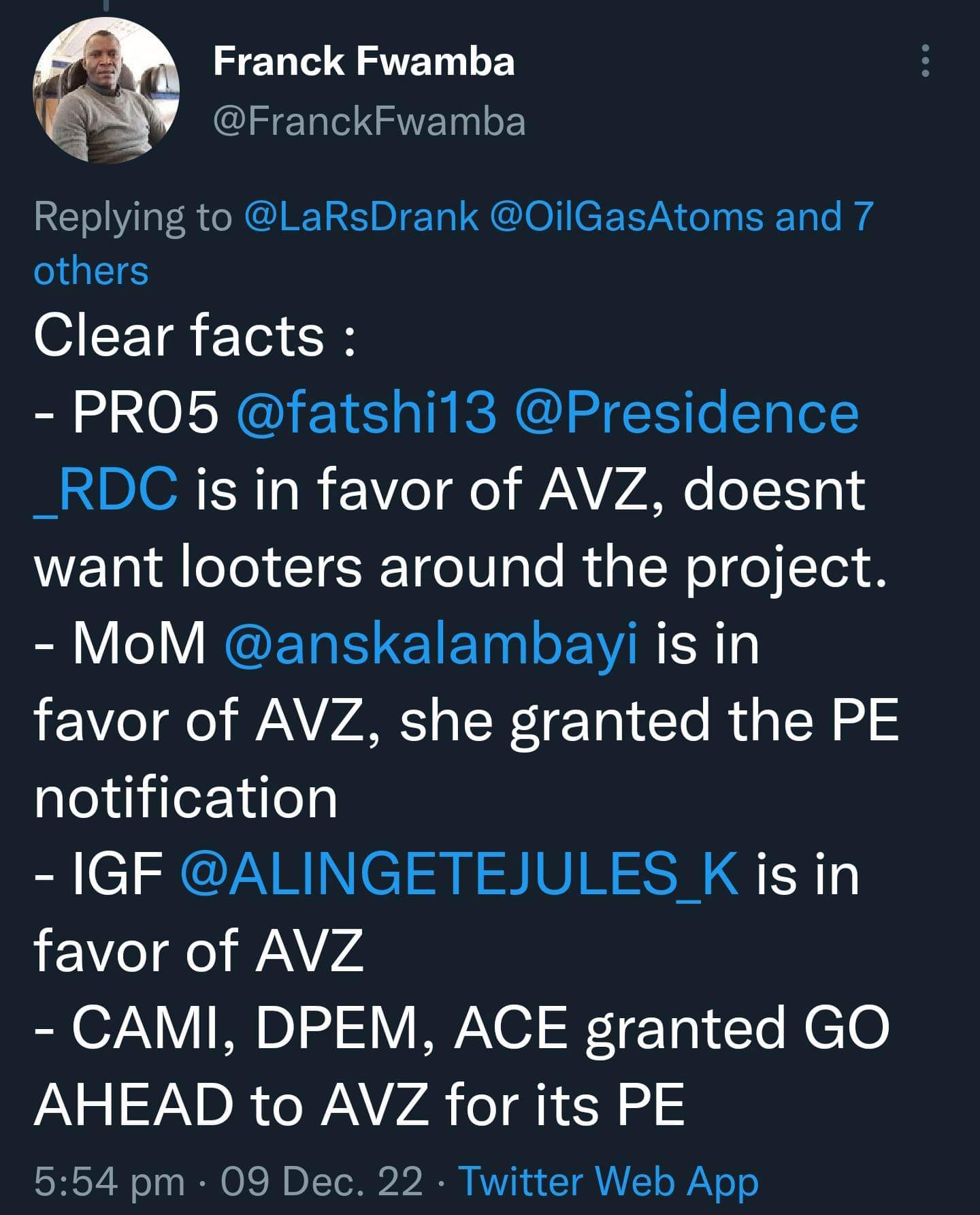 Investment from Japan, USA, Australia, Europe all gone. Is this not why twiggy was meeting with Felix? Investment in the DRC. Has not Felix been reviewing all exploitation licenses ?