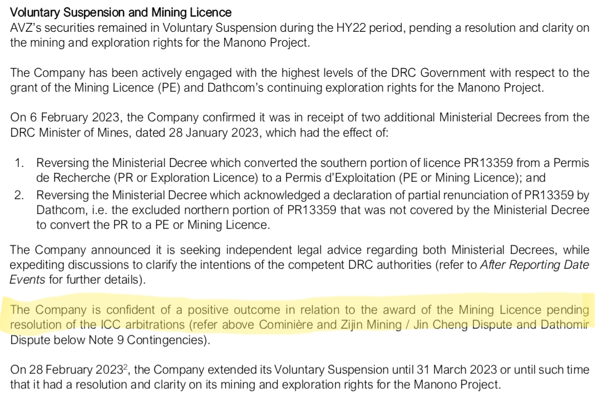 AVZI remains of the view that its jurisdictional challenge will be successful; an award on jurisdiction can reasonably be expected to be handed down mid-2023.