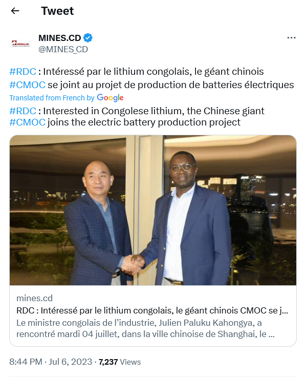 The DRC Mines Minister praised the community spirit of both companies, and said they represented the kind of responsible companies the nation is seeking to attract in order to spearhead its ambitious push for a place the global EV battery chain.