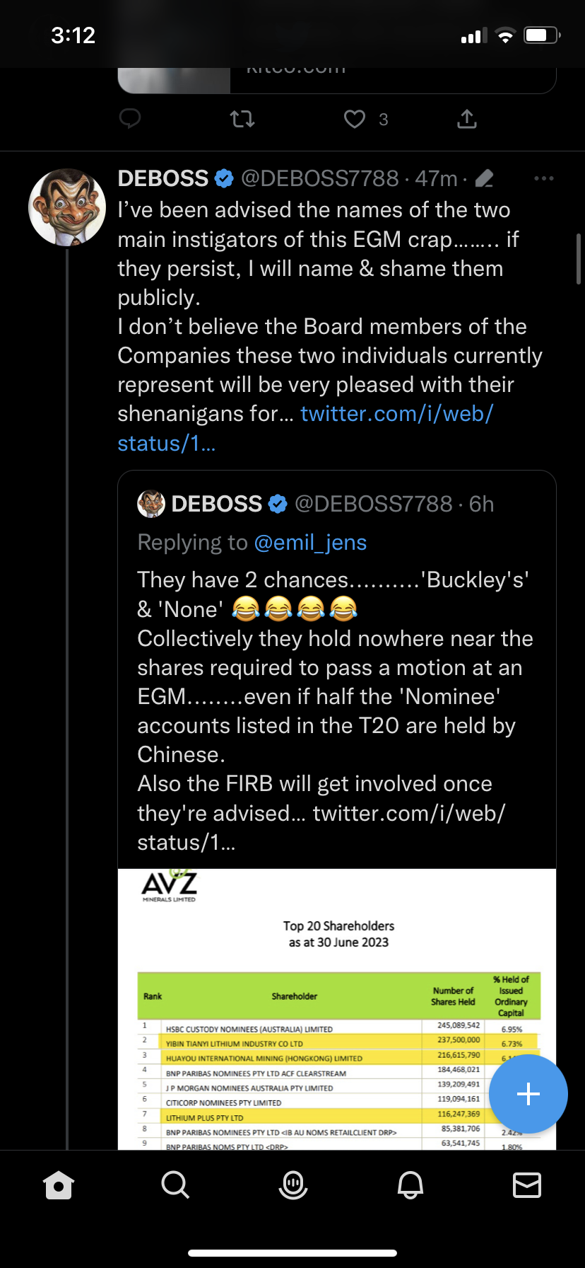 This is the time to unite and give the board a chance to get this across the line for us shareholders. It’s been a rough and stressful time for all of us but with the MoM landing on our WA shores in early September and us presenting at DRC Africa Battery Metals forum in mid September, I suspect there is good news around the corner.