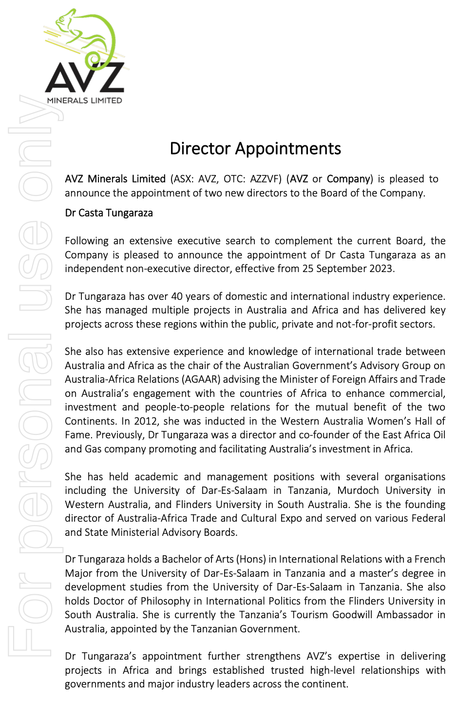Does this announcement suggest doom and gloom for AVZ ?...............NO