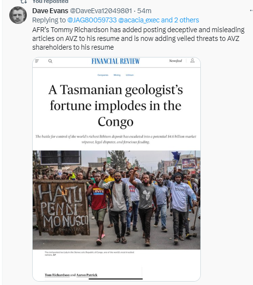 - AVZ has agreed a right of first refusal for a further 15% with Cominiere.