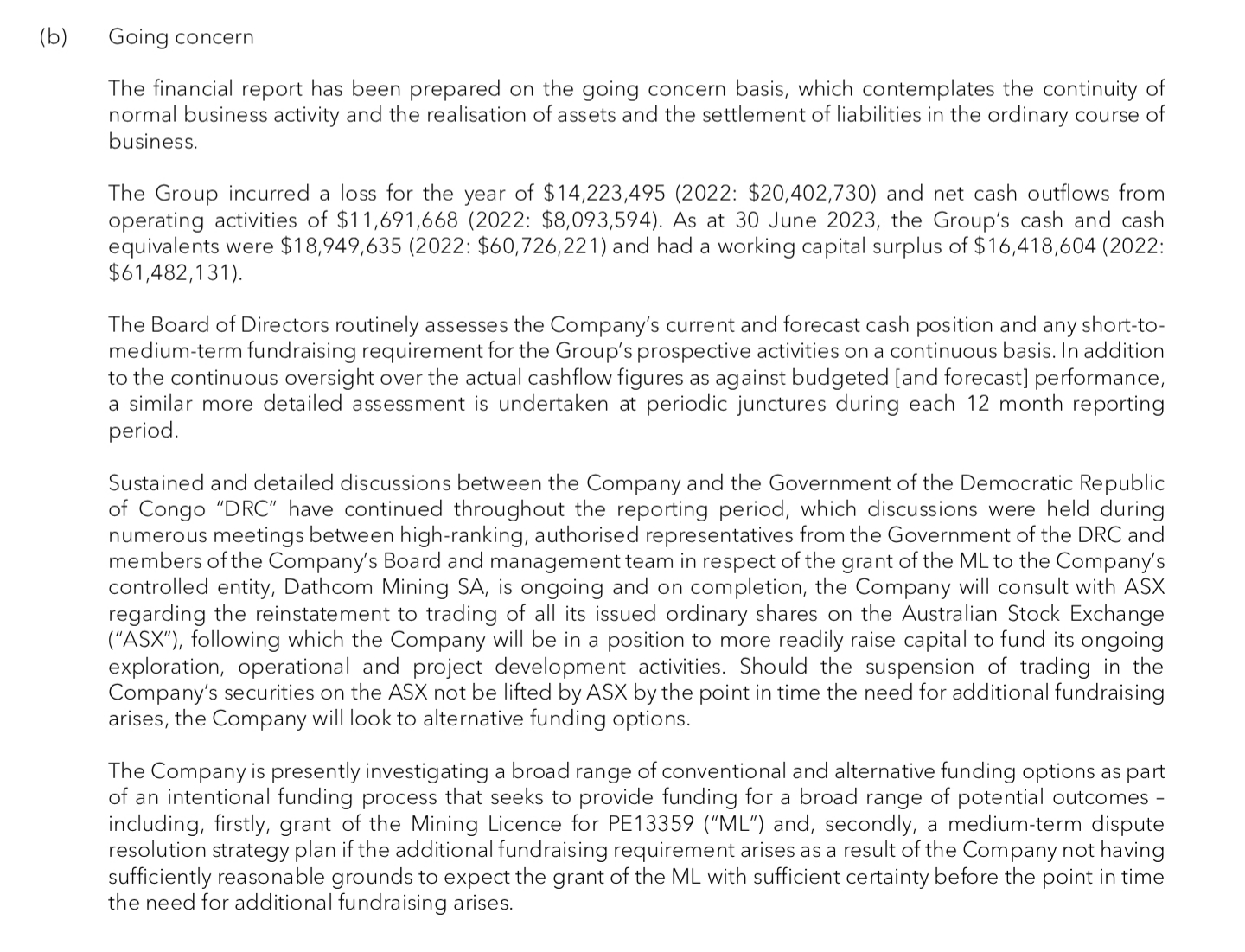 Speaking of risk there are some very alarming comments about raising capital in the going concern section. One of the main reasons I am so fucking pissed off about these pay rises and bonuses is that if we run out of cash while in suspension then the dilution needed to raise cash will not be pretty. I really don't think it is in long suffering shareholders that don't have access to their money's best interest to have potential dilution brought on quicker unnecessarily by greedy directors.