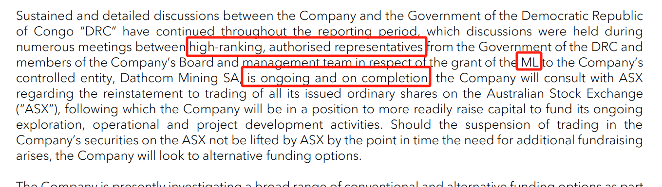 AVZ management spelled out pretty clearly what their 'medium term' plan is in the going concern fine print. Without the correct action being taken by the MoM and with only low ball offers on the table there really isn't anything else they can do unless they are willing to cede control of Manono to China and proceed with minority ownership. Which should be obvious by now they aren't.