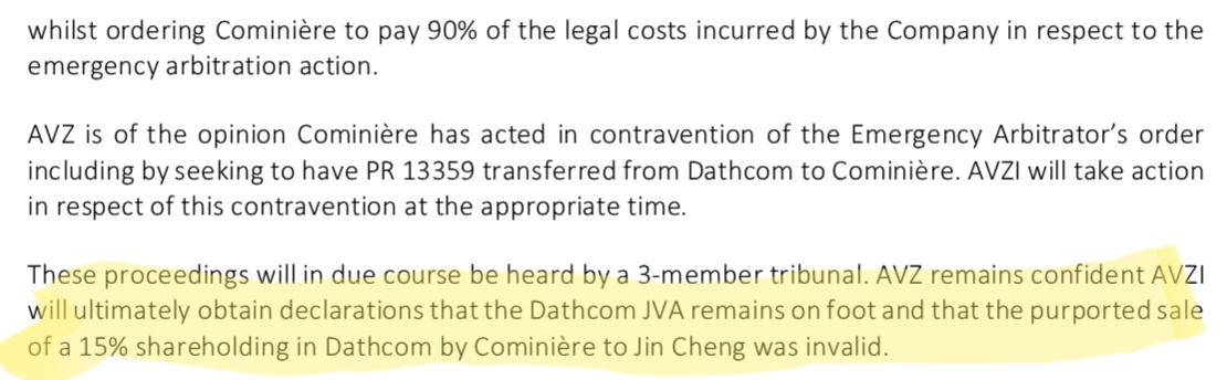 EDIT: It's just occured to me that they are referring to Dathomir's 15% at the ICC so I'm wrong here in regards to AVZ saying that Zijin's 15% will be determined at the ICC.