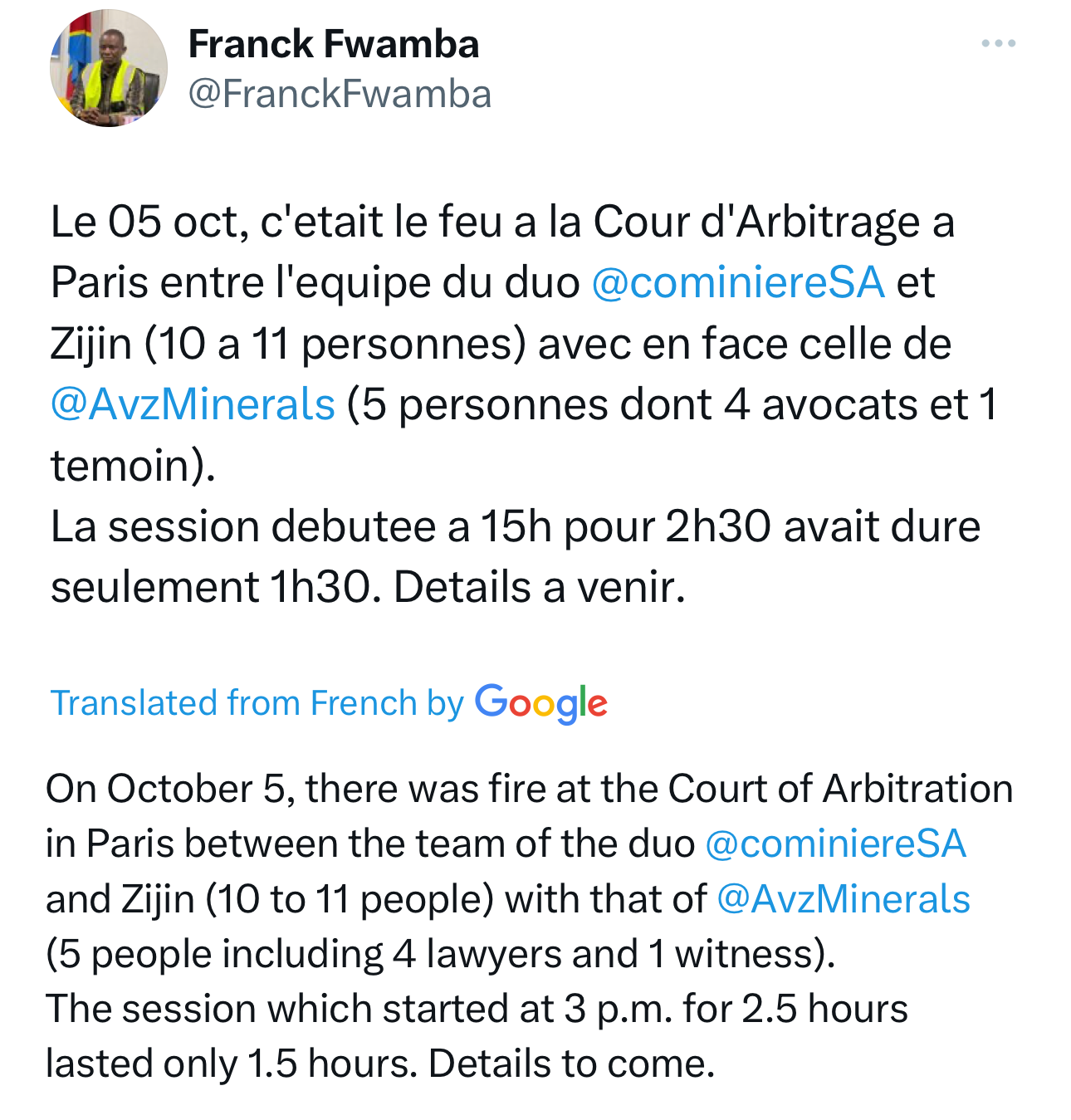 It could be lost in transalation, my take would be AVZ had only 1 witness. According to Franck, the key witness who has all important details & evidences on the contested deal.It states in one of 4the tweets that the witness was part of the AVZ delegation.