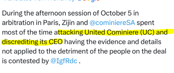 Is it a mystery? It reads to me the witness in question is the CEO of United Cominiere.Some great positivety coming out from Franck.