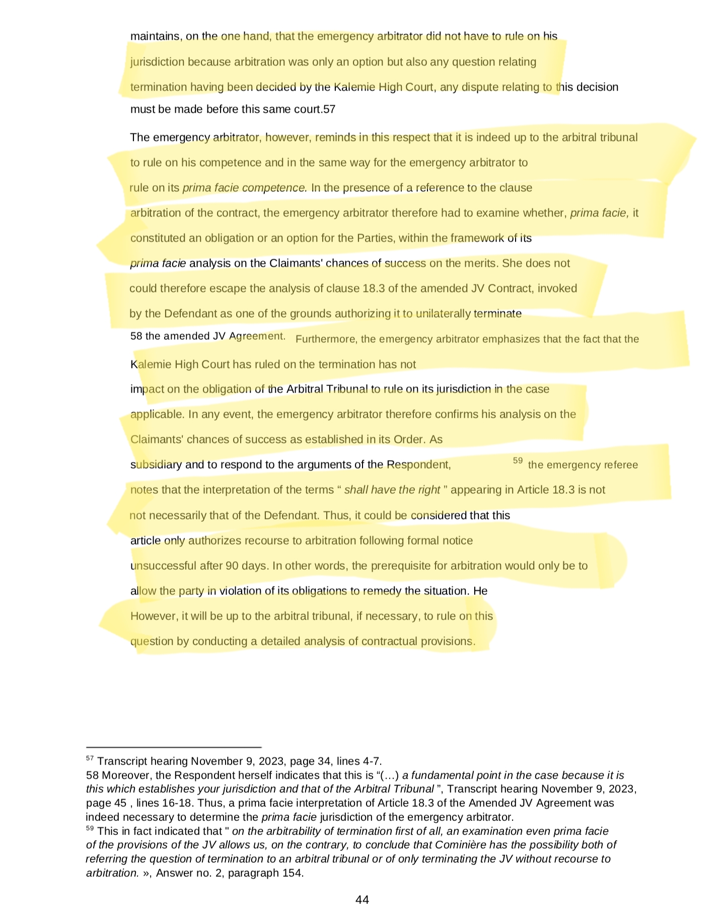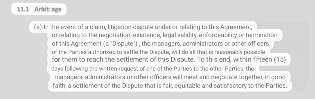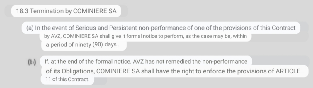 But his (And Cong's attempt on September 4th) entire reasoning for termination is based on non performance in Article 18.3 which says 11.1 must be followed
