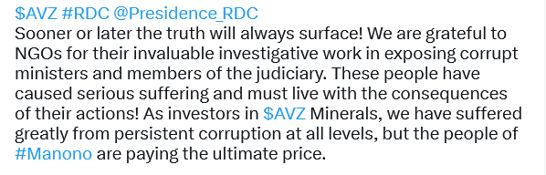 Several companies have had trouble, particularly with Congolese authorities and for purely political reasons. These are mining companies in which political figures who are not members of the Sacred Union are suspected of holding stakes in the share capital.