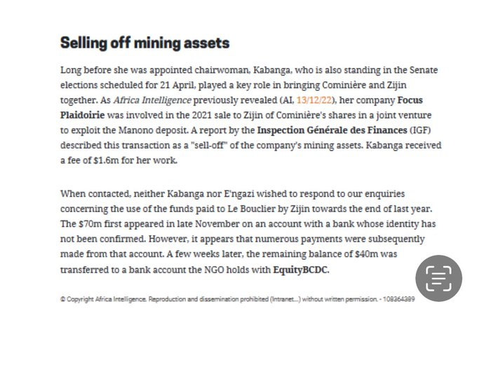 Indeed, the fact of pocketing the US$1.672 million illegally, unduly, without title or quality, Mrs. Lisette Kabanga Tshibwabwa is guilty of financial embezzlement and is potentially indictable for money laundering.