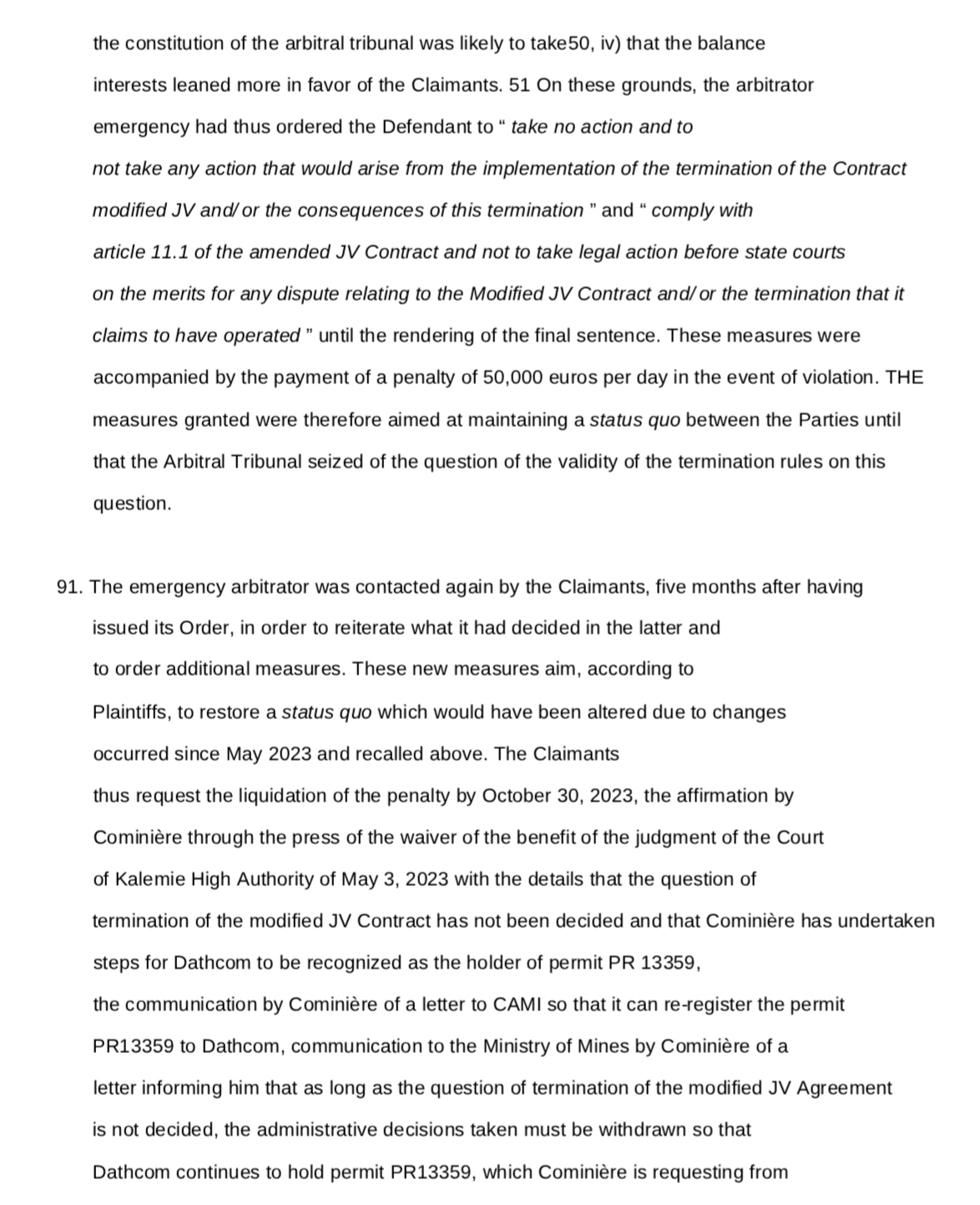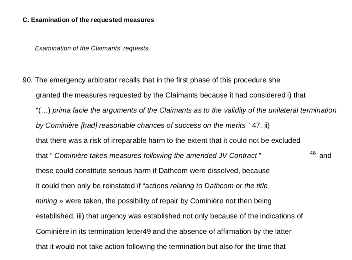 Kibeya is recorded taking the bribe, IGF proved Cominiere’s corruption, ICC has already found Jin Cheng was never part of Dathcom (so Cominiere’s termination of Dathcom and subsequent JV with Zijin was illegal), ICC and ICSID have ordered penalties against Cominiere (already over $70 million)