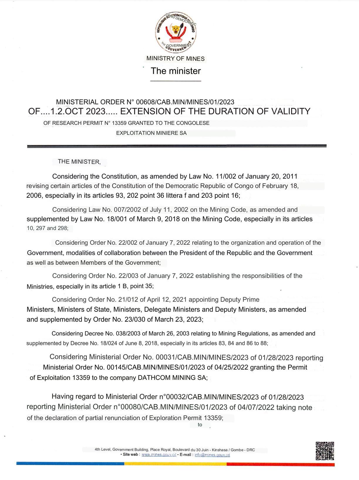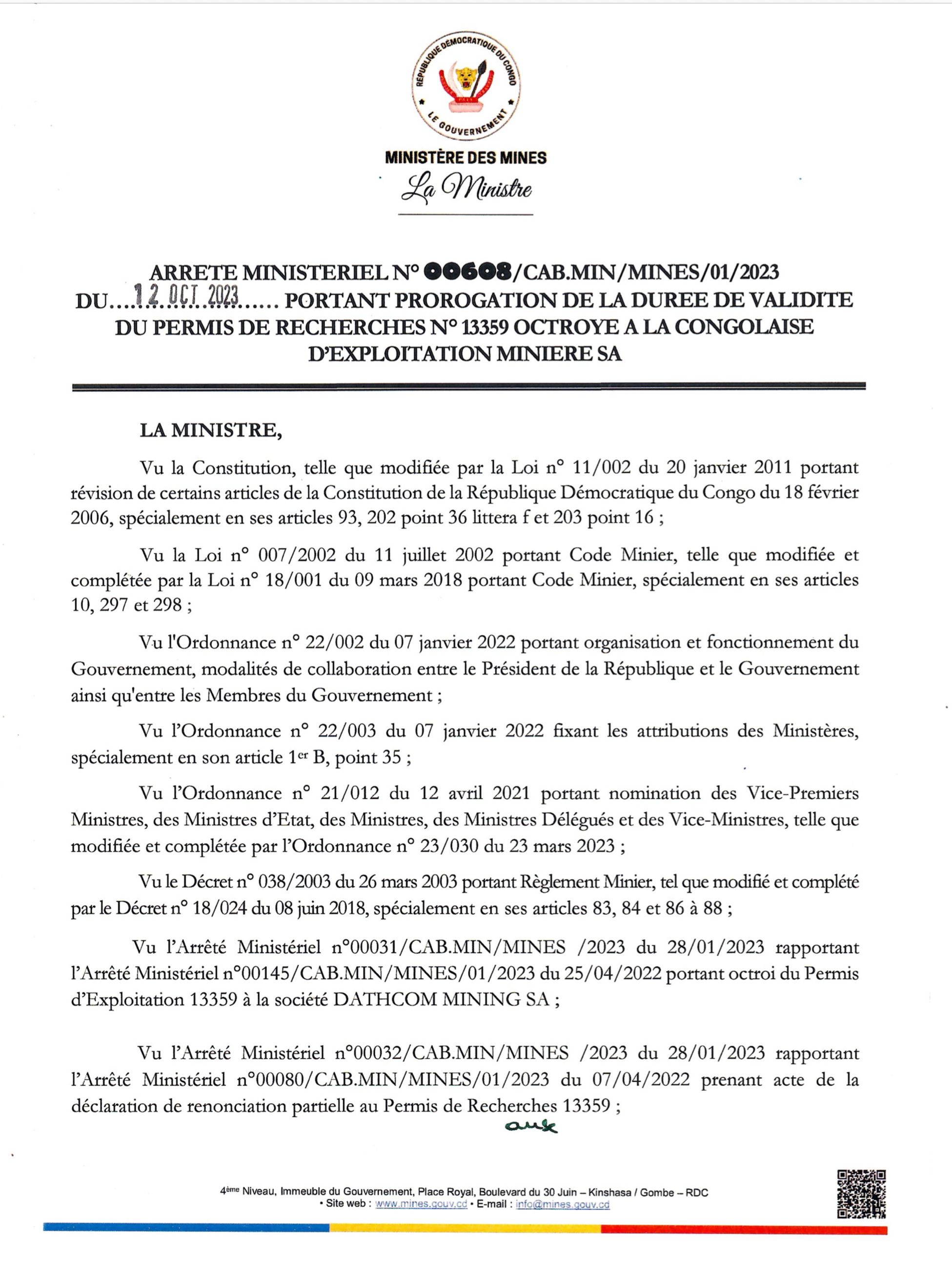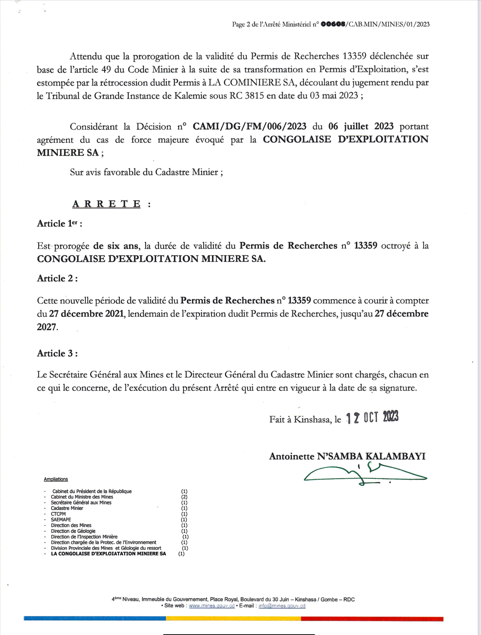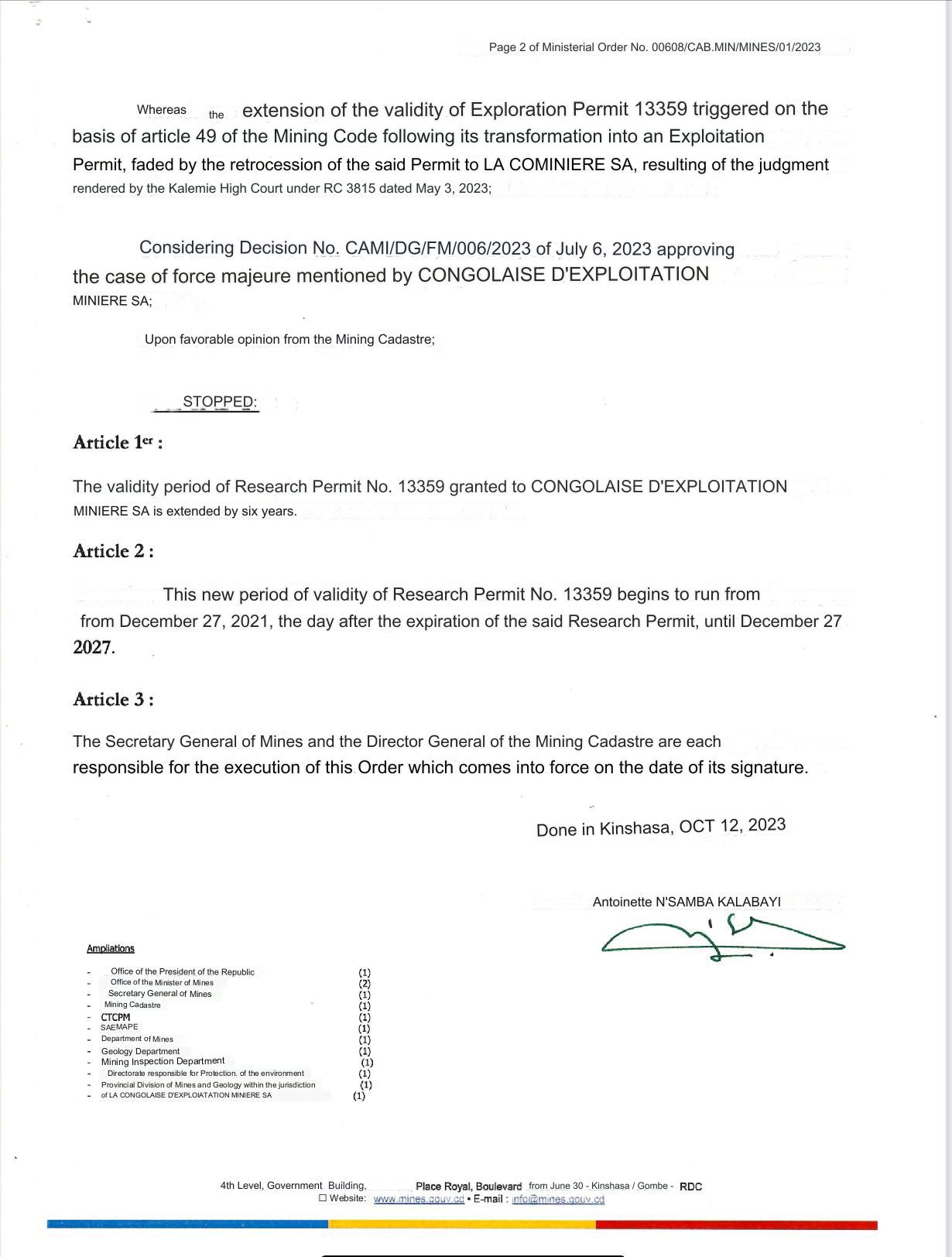 If I hadn’t of posted after having about a bajillion tequila shots last night I would have realised that I was wrong and that the not photoshopped decree is the purported renewal of the tenement for Cominiere and not their subsequent relinquishment of the new north split and the following granting of 15775 in Manono Lithium’s name that was done without a tender process. Now that I’ve sobered up I have double checked my records and I don’t have a copy of the decree for the creation of 15775 and to my knowledge it has never been made public. But the event has been recognised multiple times by AVZ in official announcements where they say the events are unlawful which I completely agree with and have said so here previously numerous times. The 15775 event has also been recognised by the ICSID. But ultimately if we need to go the distance and the merits are heard I think they will wind that renewal, subsequent relinquishment and granting back.
