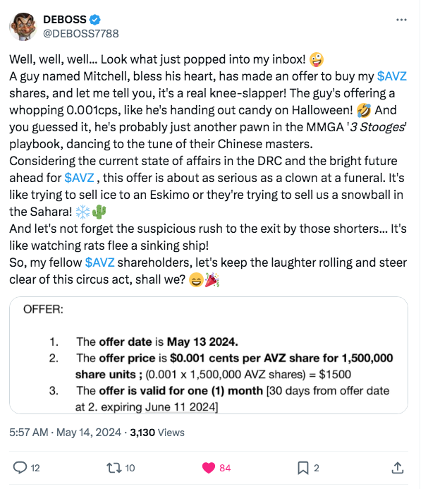 However, at the offer price of $0.001 per share, I would rather burn them in my Coonara than give them away to a faceless proxy for the very Chinese grubs who are out to steal Manono.