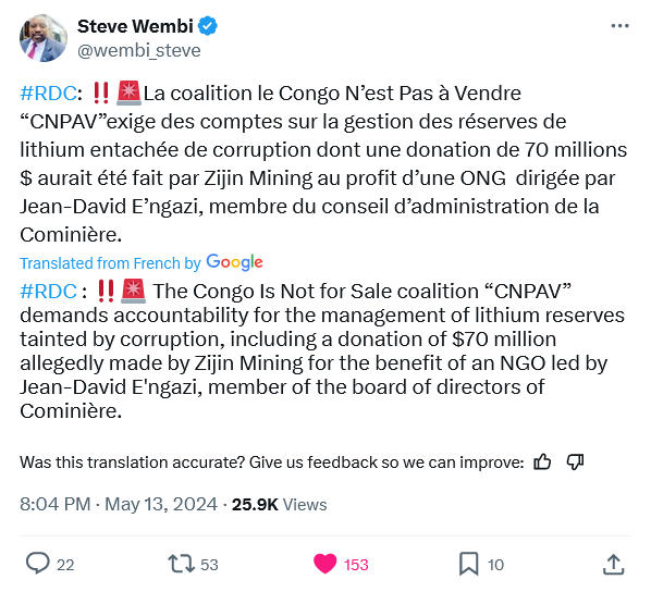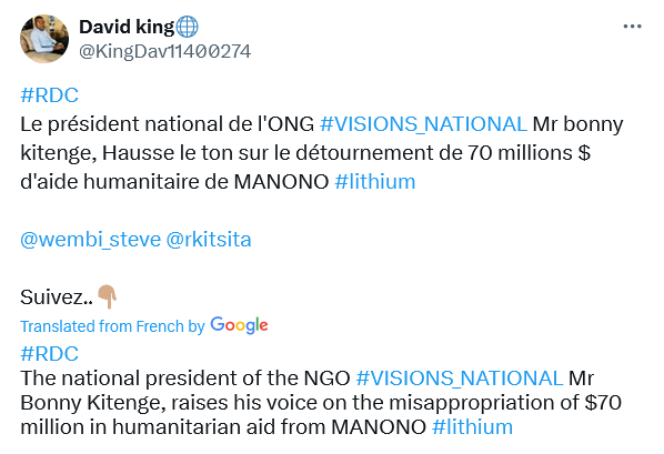 Ooh I’m loving how specific these original French tweets are getting - re naming members of the board of Cominiere etc. Seeing that really feels like traction is building from within the DRC which is exactly what we need. We can do as many English tweets as we like but the real power of change is going to come from them - they have the most to lose and the most to gain… Maybe the cogs are starting to turn!