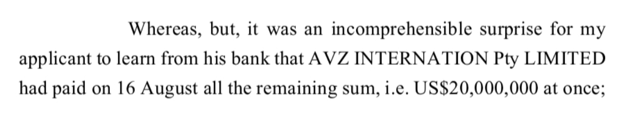 The likely reason why the $20m was stolen now, through cooperation of Zijin/Other corrupt DRC and Chinese criminals. $AVZ will win the case below and if Dathomir did not pay damages, $AVZ could have taken the $20m AND the SPA %s.