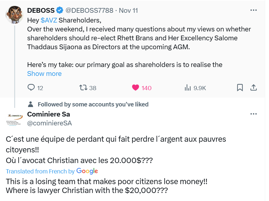 Oh and just for the record, AVZ aint a ASX listed coy anymore, therefore rules get lax