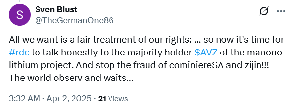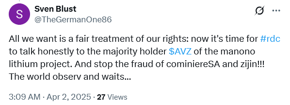 Re: https://www.theaustralian.com.au/business/mining-energy/perthbased-avz-minerals-congo-lithium-hopes-hinge-on-us-envoys-talks/news-story/8ef1498e0d201415a5c0286718bac360