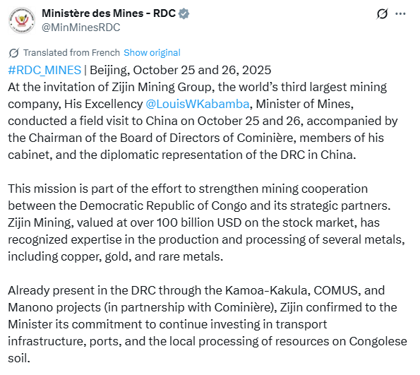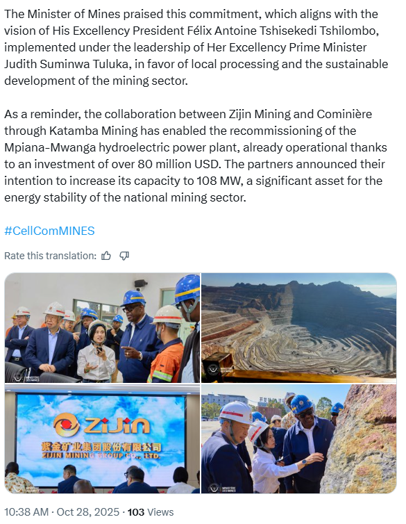 In the first moment I was also angry but if DRC wants to solve the Manono dispute they need to involve Zijin and Cominiere. We don't know what was discussed behind closed doors. We only see a short message on X.