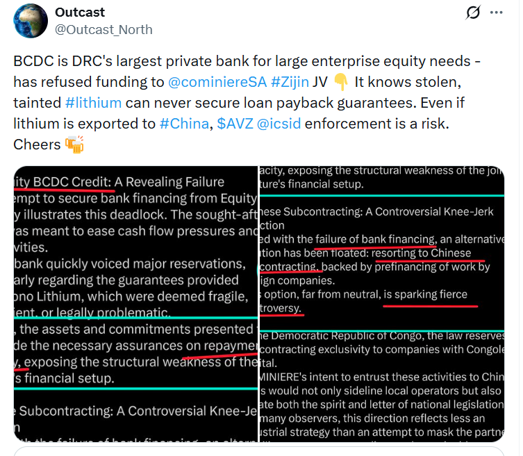 Other international companies operating in the lithium industry are giving DRC and therefore AVZ a wide berth. They know exactly what a mess this is.