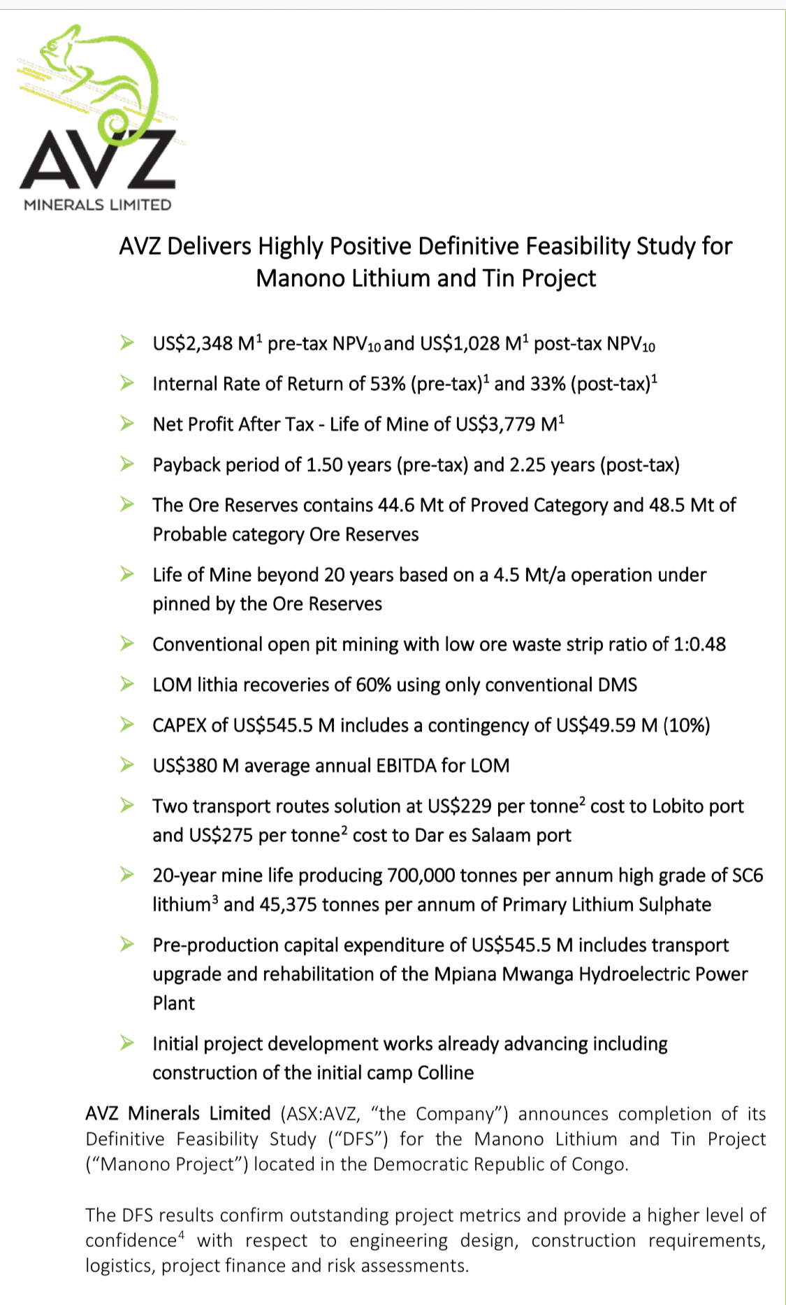 This was the case with Tantalex and Zijin but clearly not with AVZ. AVZ might have been thrown in to make a comparison too, rather than being in the same boat. These points could easily be made in a reply to the article, showing AVZ is the only company to produce the DFS and Environmental Studies 👇
