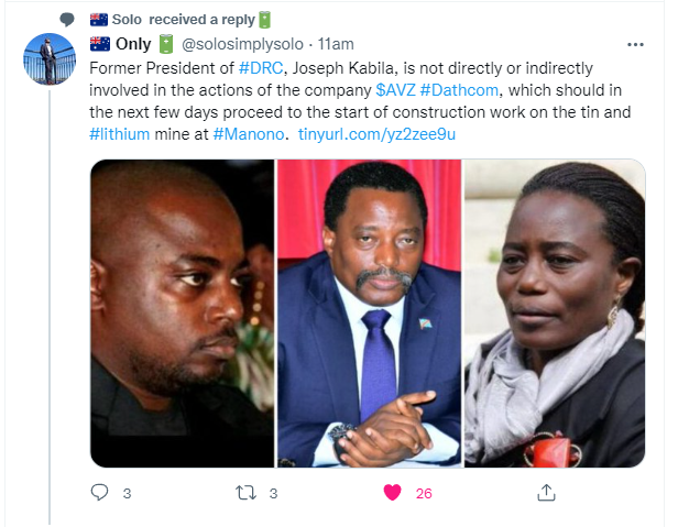 Just to add to my previous post, I have since found that AVZ did say in an interview with Global Witness that “it had found no adverse information about Dathomir’s owner and it had engaged in a due diligence process that found no ‘inappropriate links’ to the regime of former DRC President Joseph Kabila”. Which is one reason I find having to sift through unrelated and less informative information only slows up the process when you are trying to dig up as much relevant information as you can with the time you’ve got