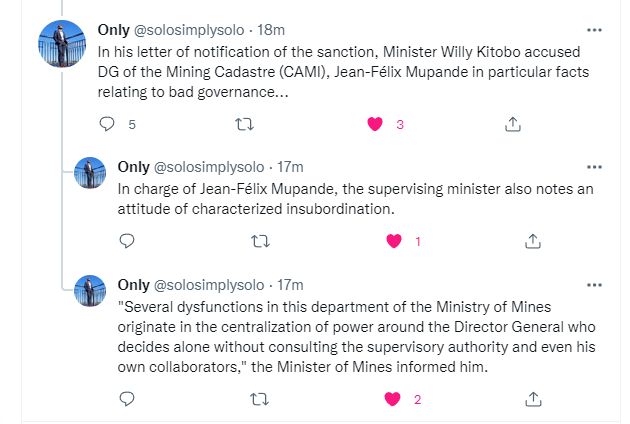 The fake MoM account was relatively new. Whereas this account has been there since 2010 interacting with people in the DRC mining community. Can't confirm if it's real or not but it definitely belongs to someone that has been involved with the industry for over a decade.