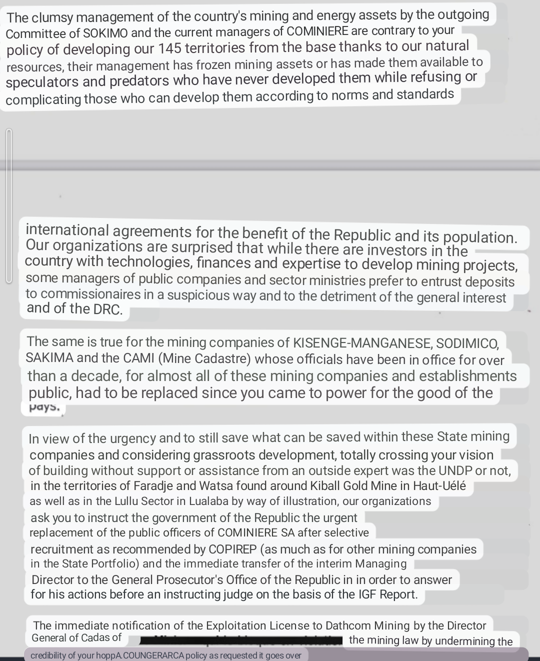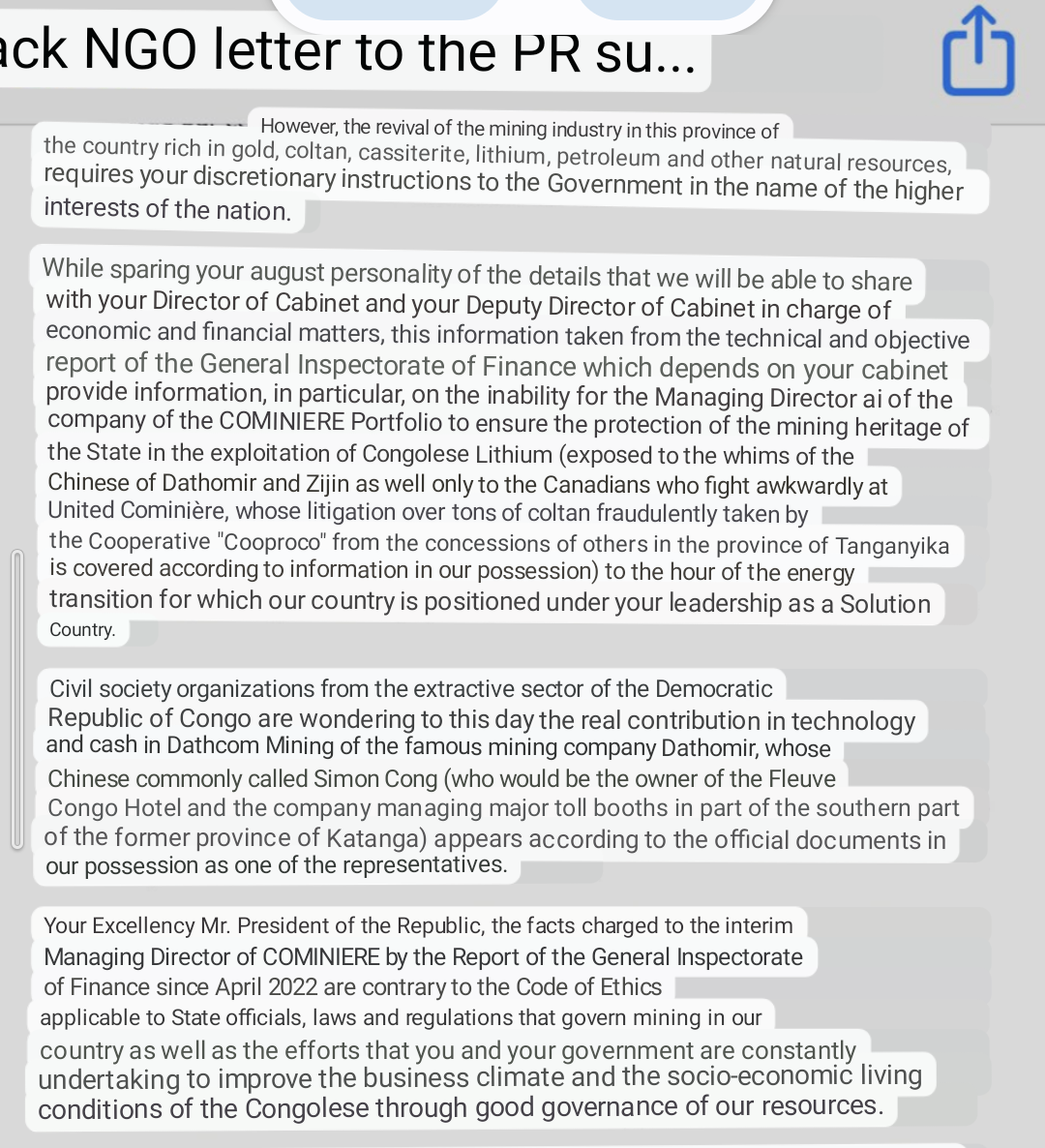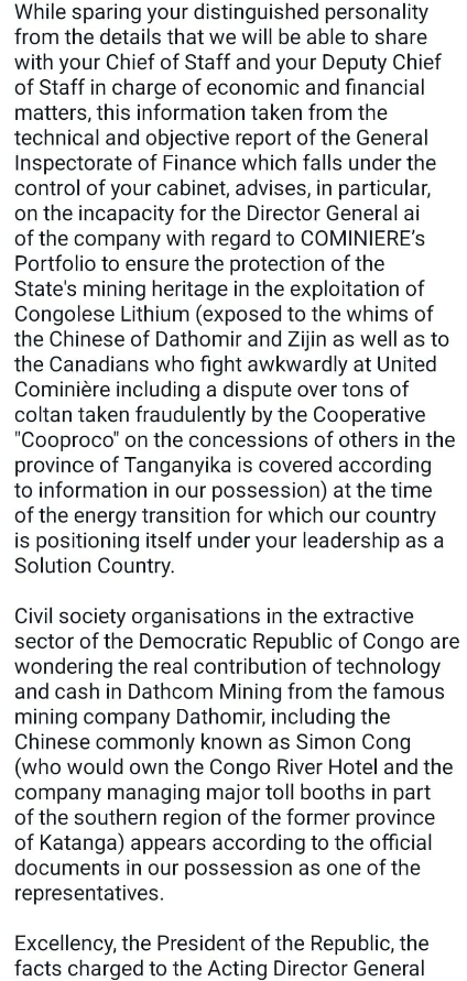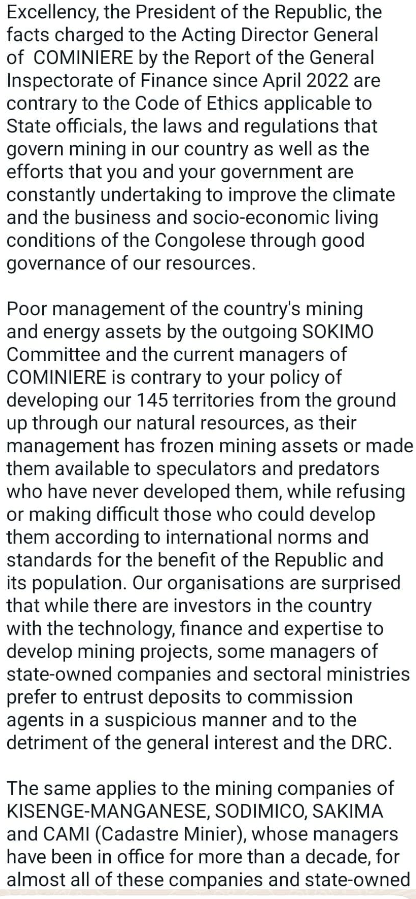 Its a small positive that we now have those within the DRC calling for their own corruption to be dealt with and asking at the highest level too.A bit better version to read.....Love the fact Simon Cong has been mentioned