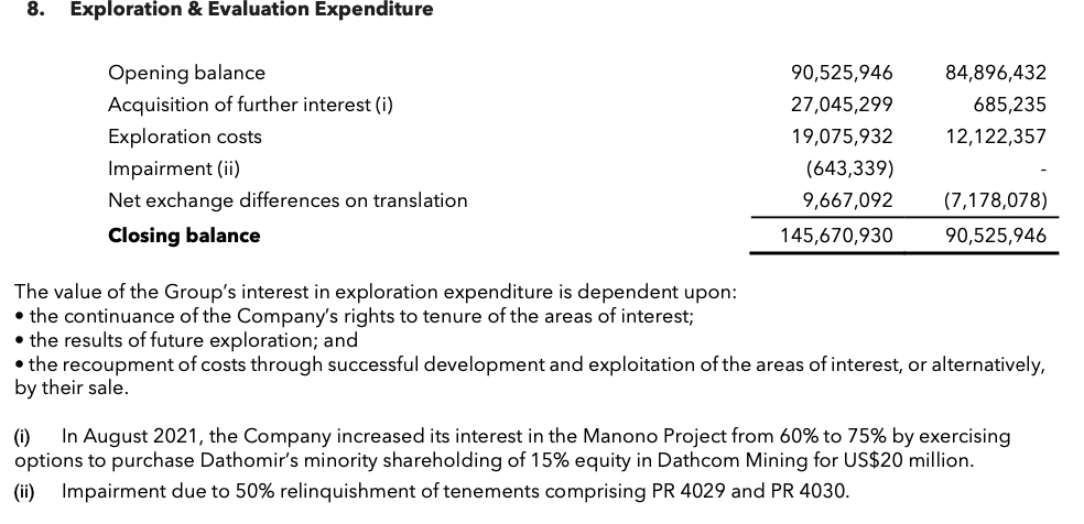 Here's the note in the accounts about it