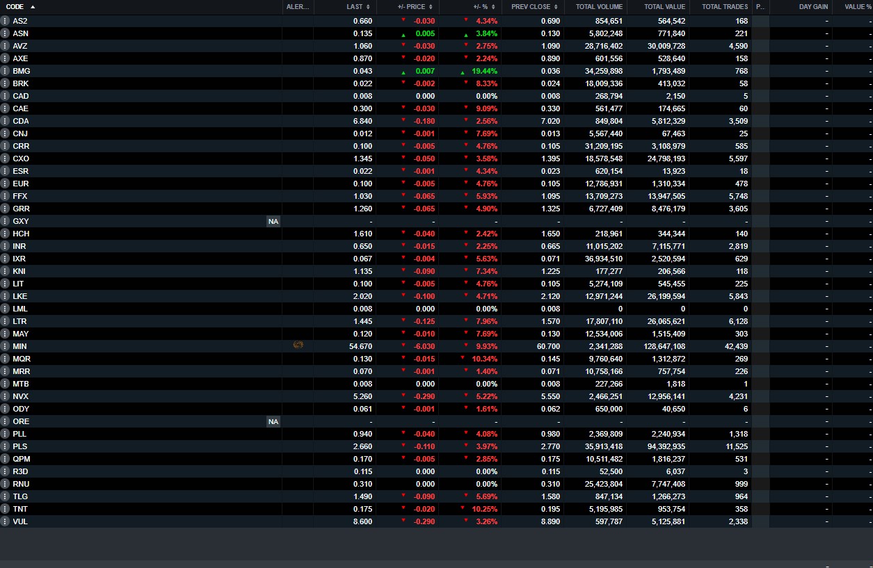 In a sea of red across my portfolio the close for AVZ wasn't too bad
