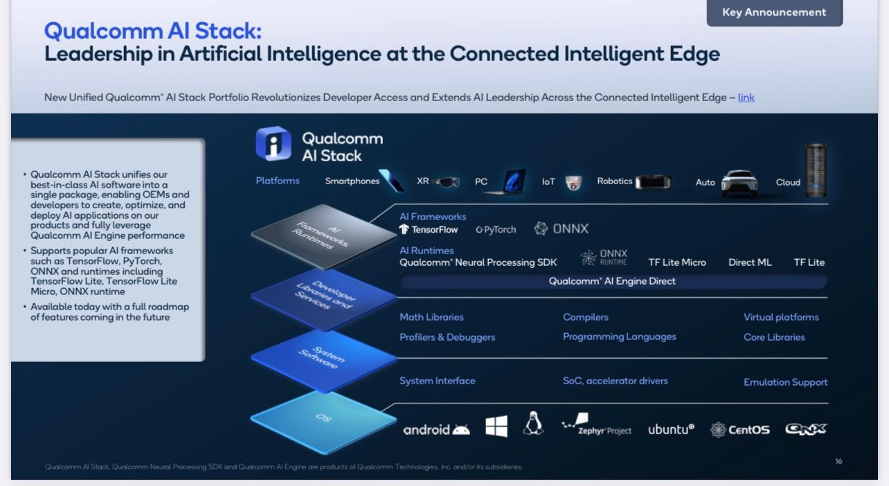 Today at Qualcomm’s earnings call from Cristiano R. Amon talkings about # AI Stack .. Exciting to see all our engineering efforts being reflected by business leadership at center stage .. # Qualcomm AI - Path to connected intelligent edge ..