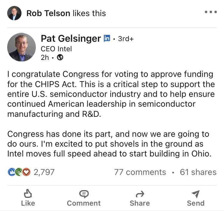 If I was the CEO of Intel, I'd be congratulating Congress as well.