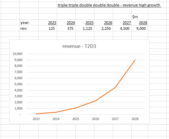 Using T2D3 revenue growth for high growth stocks, i have worked backwards -