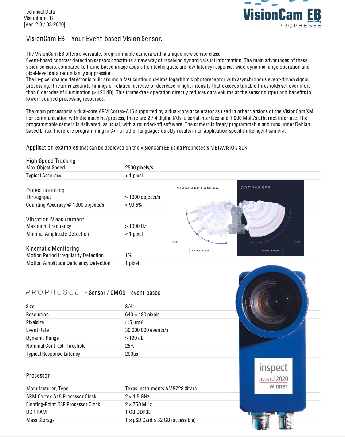 • Lucid Vision Labs: Following early prototype announcement at VISION 2021, Machine Vision leader Lucid announces commercial availability of its new Triton EVS, featuring the Prophesee Metavision sensor inside.