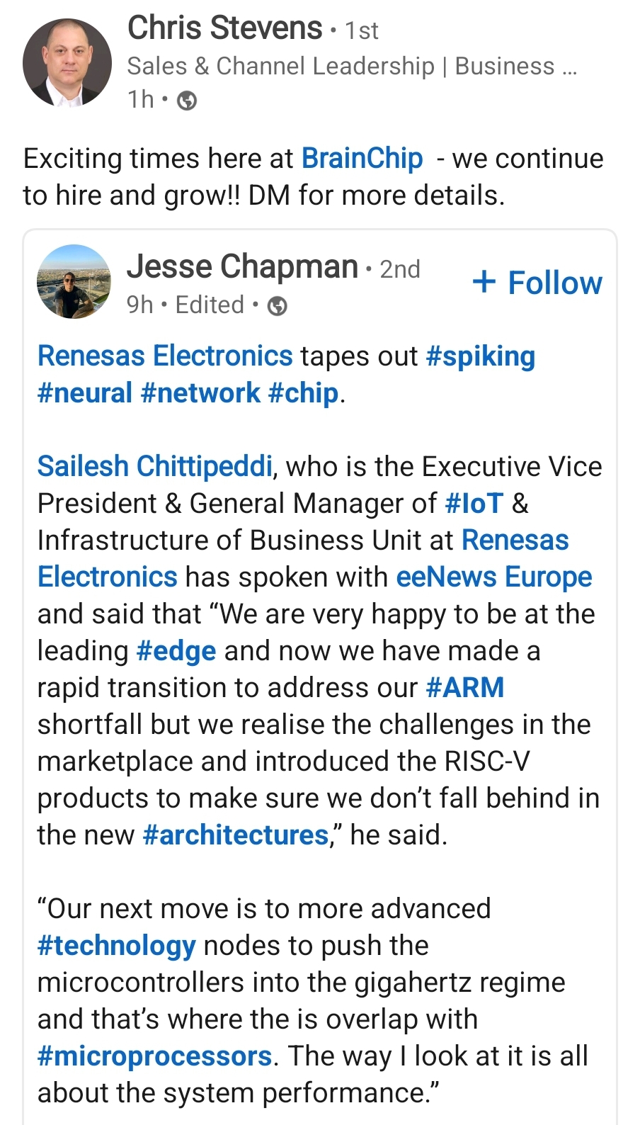 Fantastic news from Renesas at the weekend. There is nothing more satisfying than being a long term investor in a company and watch it progress over time.