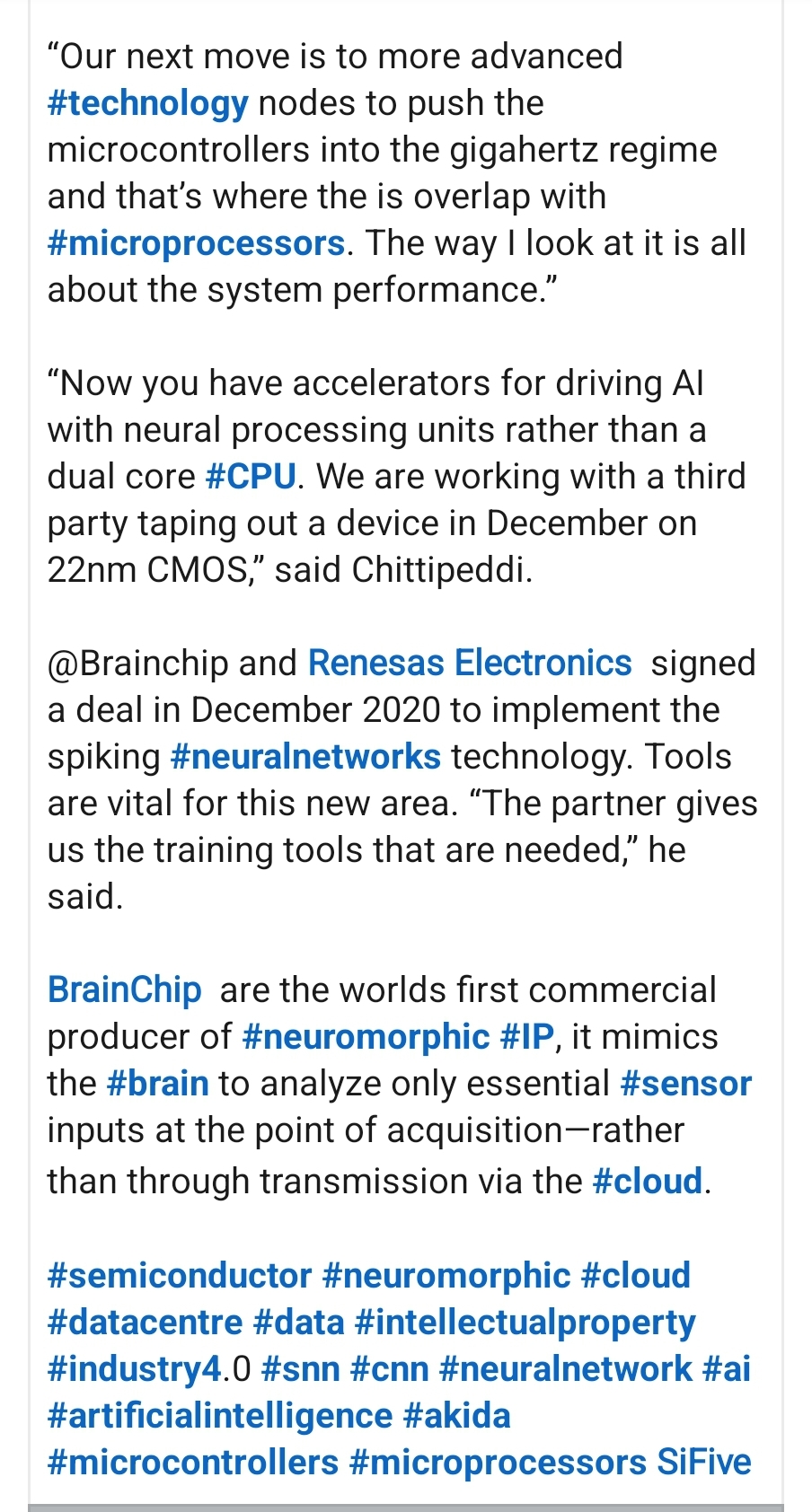 We like Brainchip here and as investors in the company want to see it succeed and its share price go higher.