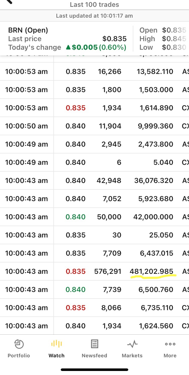You might like to take advice on converting your home loan into a loan to buy an investment being your BRN shares making the current non deductible interest on the loan tax deductible.After almost 8 years I am still feeling it and even more so now with so much happening. Had to sell a small parcel yesterday which is the first time I have sold any in those 8 years. Needed the money for a land settlement in the Avon Valley so that we can build our dream home. Initially I was going to sell a lot more so we did not have to finance the purchase but I could not bring myself to sell more than the bear minimum knowing that one day we will have more money than we could have ever dreamt of.