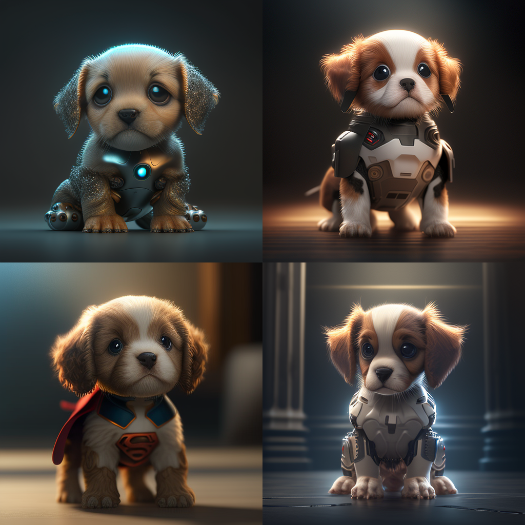 cute puppy, super hero, AI, part robot ,CGI,2D,highly resolution,elegant, happy,hyper realistic,8K