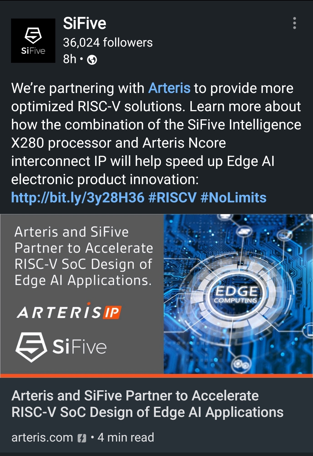 Thanks for posting it @TechGirl .... huge news.... x280 processor from sifive is something i will keep my eyes open from now.. now that we know it is with google...