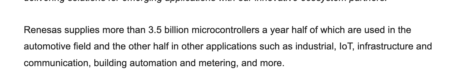 Renesas is the number three supplier of MCU’s to the automotive sector and well ahead of Bosch which everyone has likely heard of.