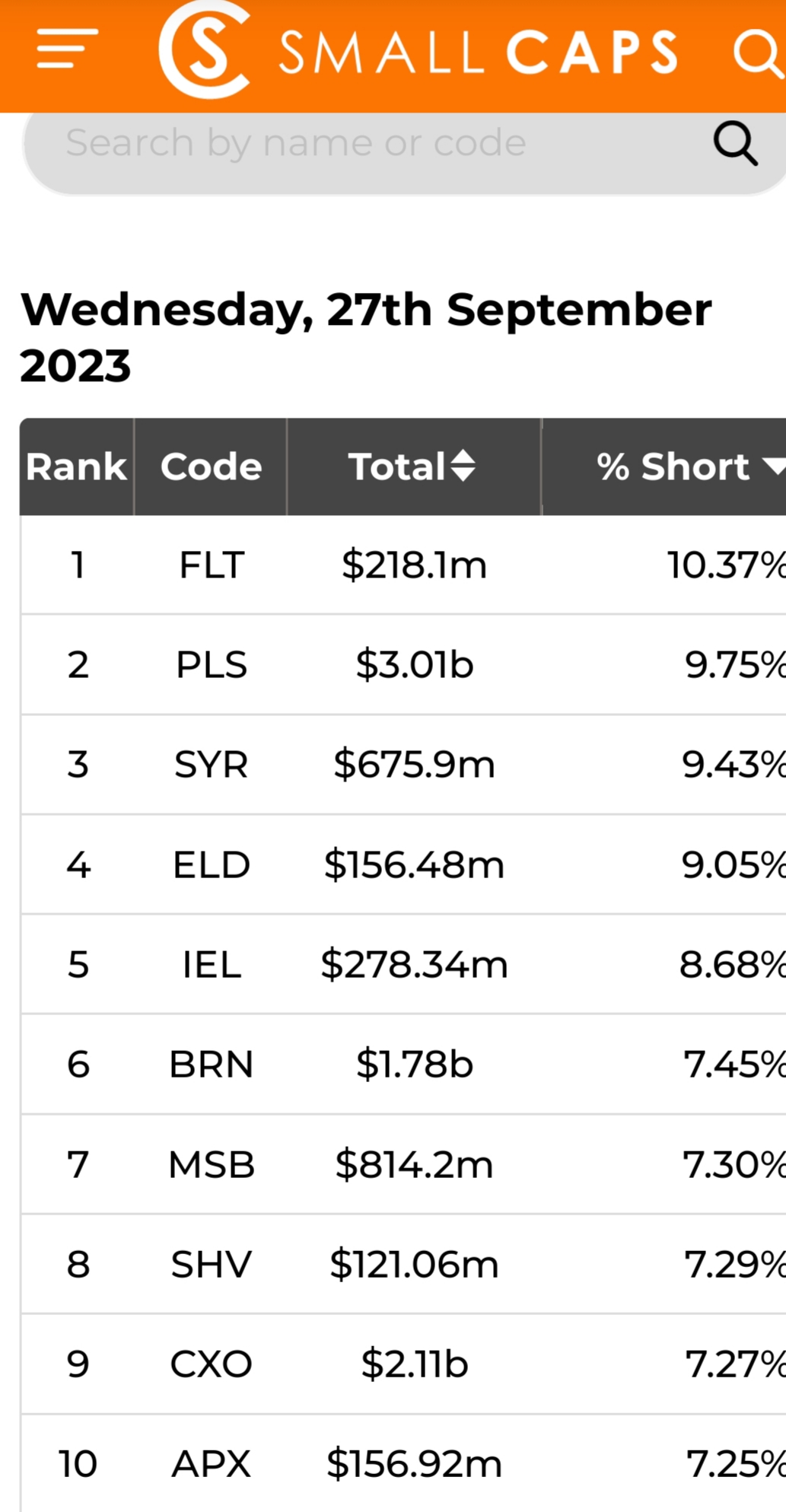 So considering our quite large float (and the fact most companies on the ASX would have many more shares on issue, than the most shorted in the World).