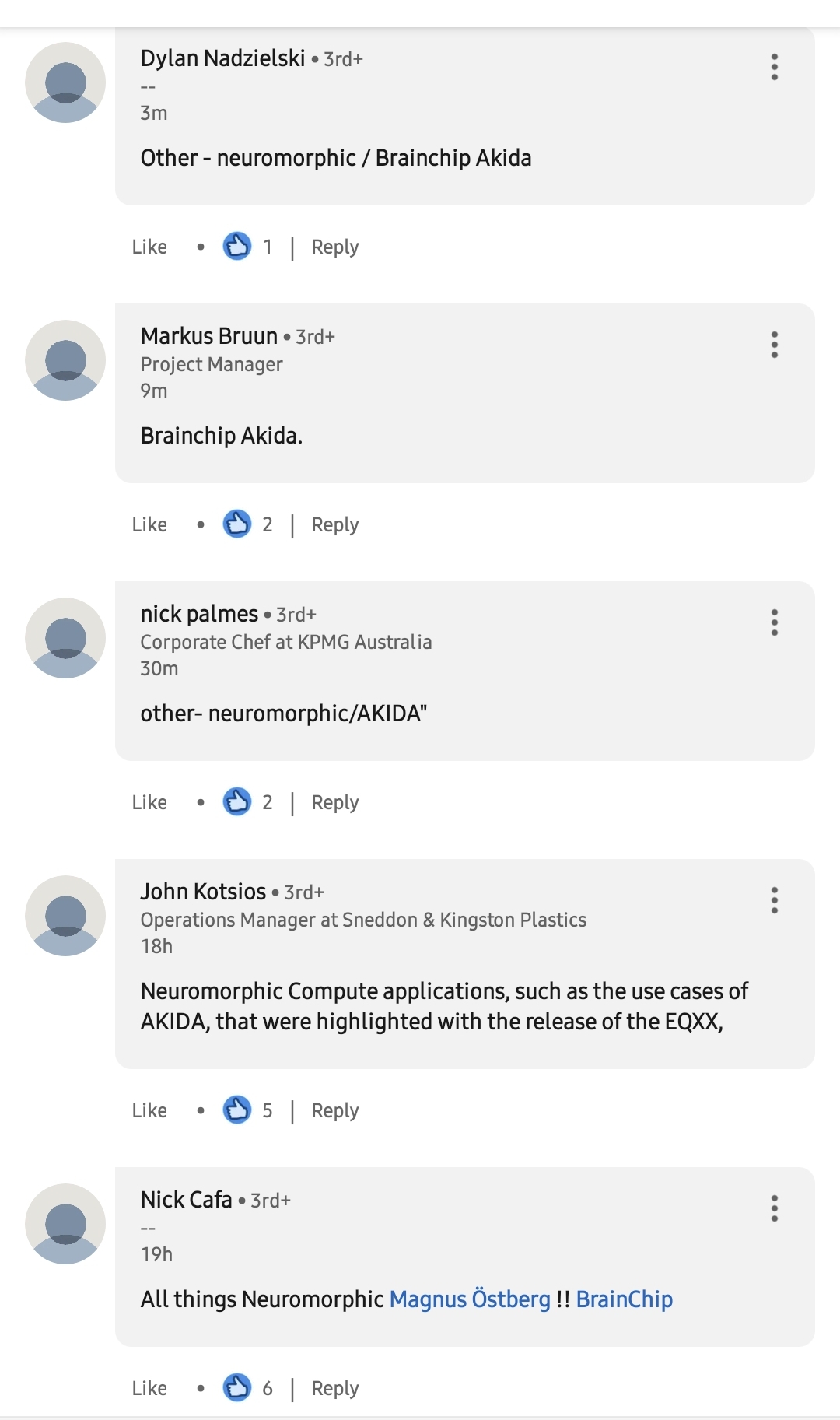 Also worth recalling that systems (plural) have been developed by MB based on BrainChip technology. The example in the EQXX is key-word detection, I still wonder where the other examples landed.