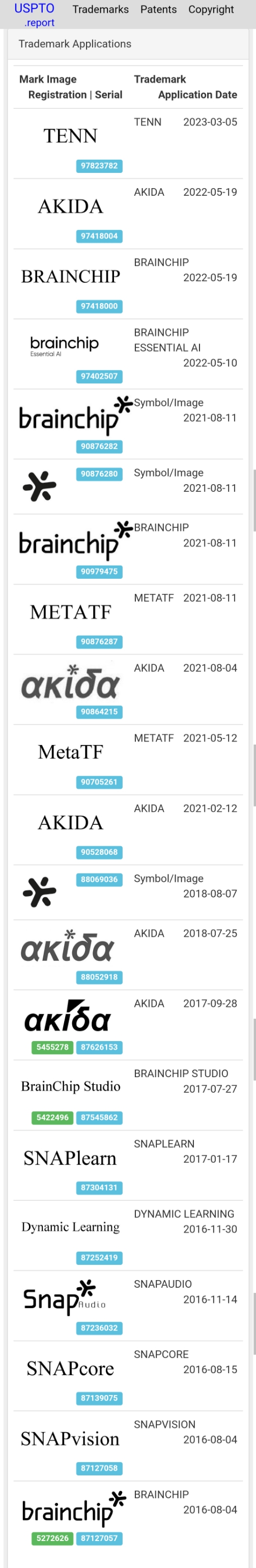 I don’t think BRN has trade marked the name ‘Brainchip’. They are the company called ‘BrainChip’. On the other hand they have trade marked the name ‘Akida’.