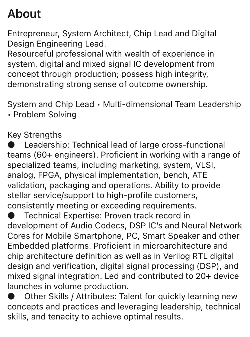 She was at BRN for 6 months and got her name on 3 patent applications. She was involved in making the FPGA for the Akida proof-of-concept chip. Anil would have been very hands-on in developing this chip.