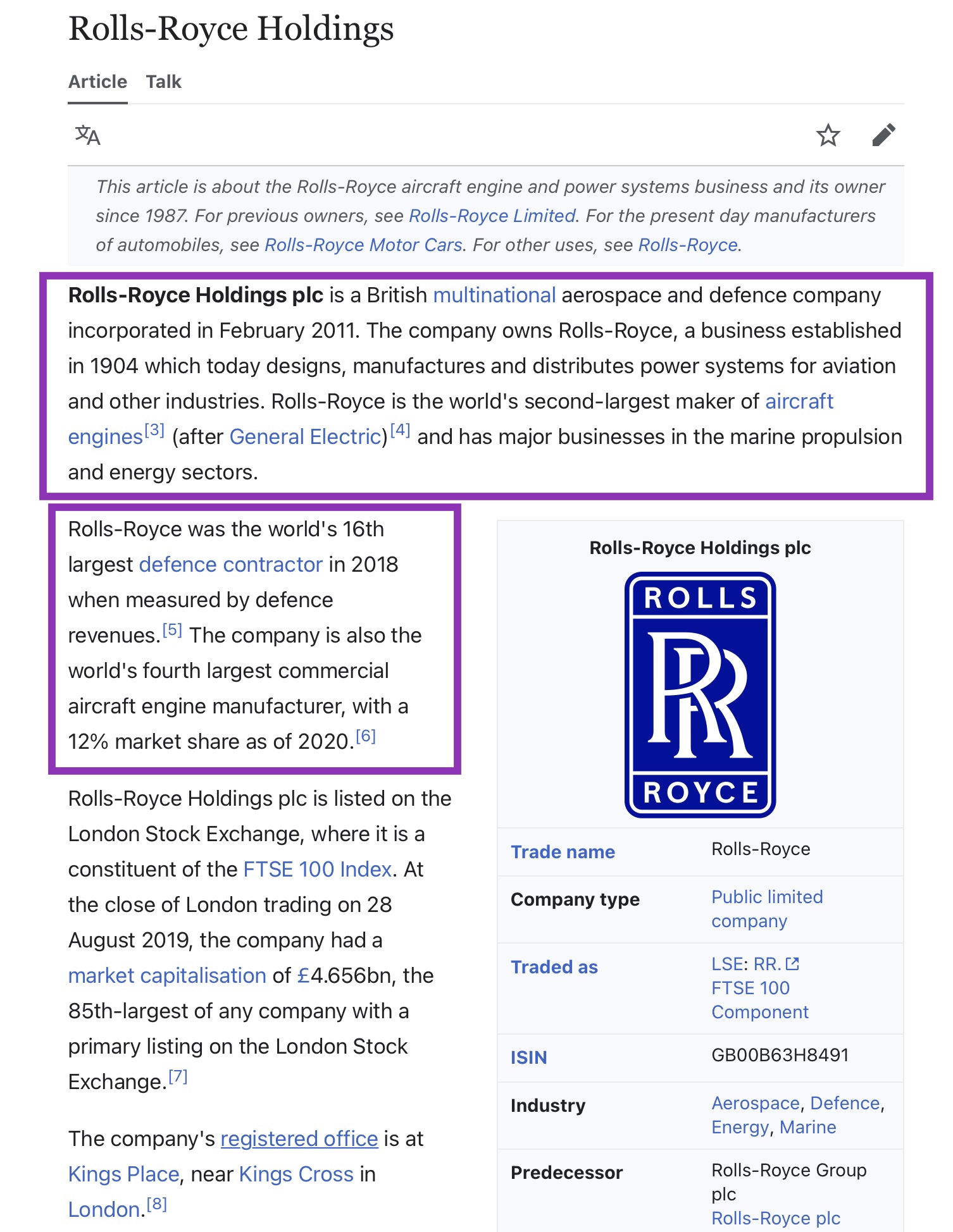 actually, Rolls-Royce Motor Cars Ltd, the present-day manufacturer of luxury automobiles with the iconic front grille and Spirit of Ecstasy bonnet mascot (https://www.press.rolls-roycemotorc...the-human-drama-behind-the-legend?language=en) and Rolls-Royce Holdings plc are two completely separate companies, despite their similar names and emblems.