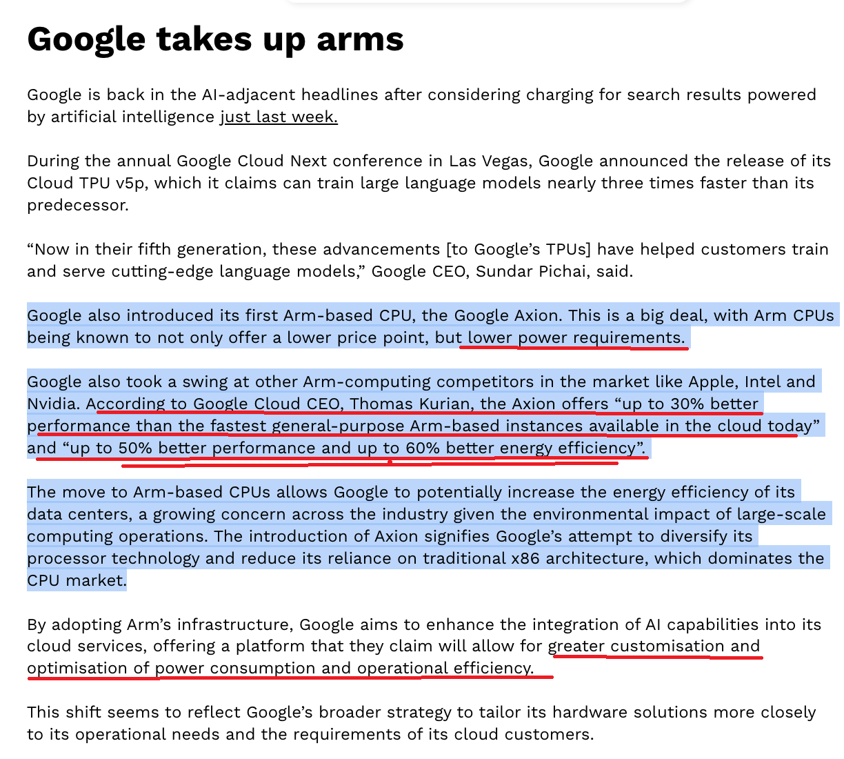 This begs the following questions: Firstly, why does Nandan "like" this LinkedIn post and secondly, how has Google achieved such incredible performance and energy efficiency improvements using standard Arm cores? My hope is it's because they have used dedicated accelerators.