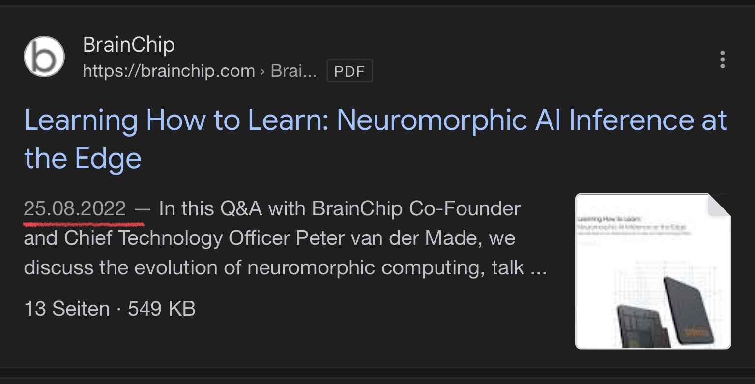 I see that Fact Finder - as to be expected - has updated his personal list of ‘companies and institutions which have been confirmed as engaged with Brainchip’ to include Boston Dynamics.
