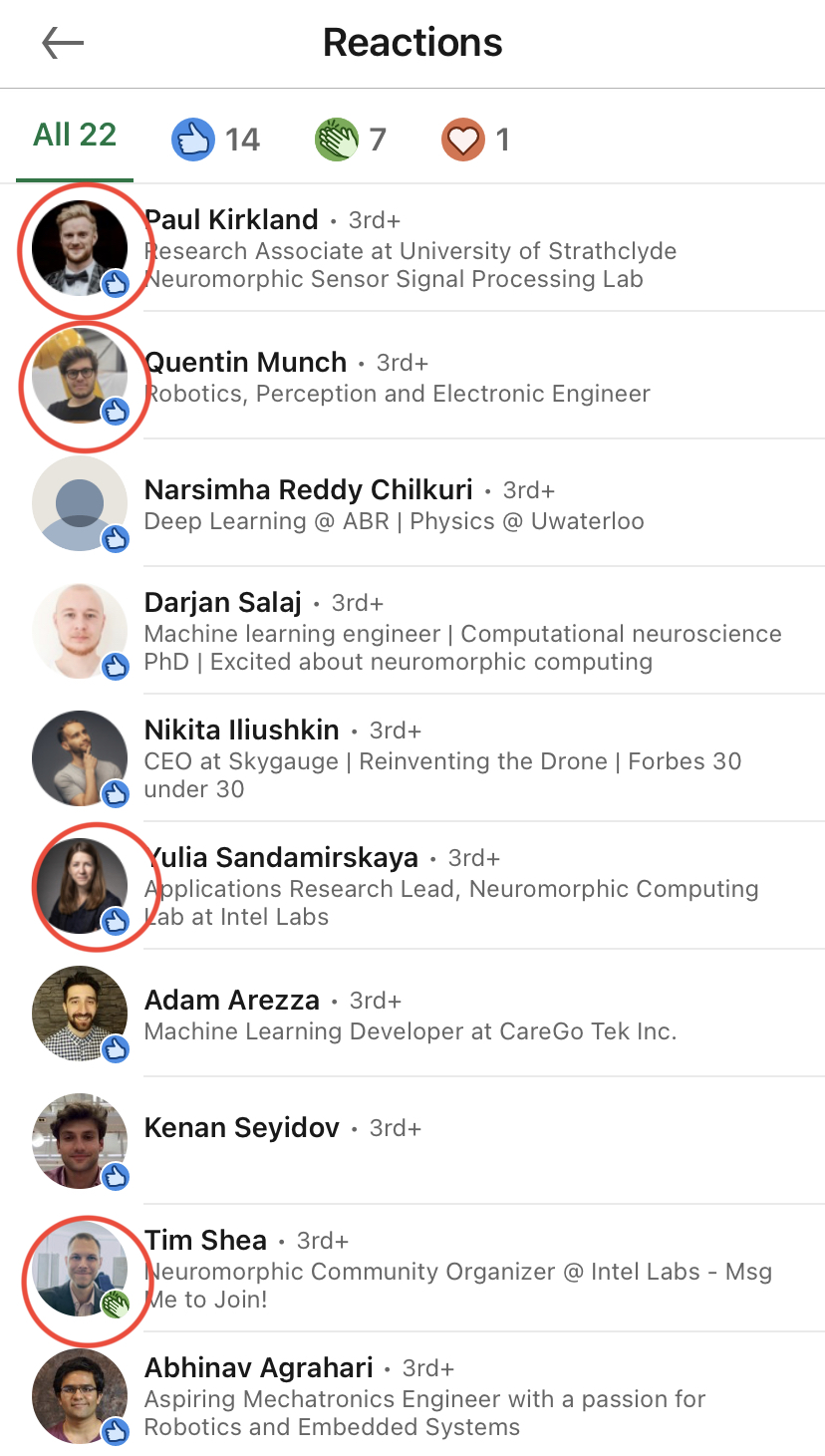 Interesting who liked the LinkedIn post. Out of 22 there are six who follow BrainChip on LinkedIn