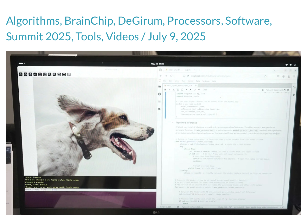 Stephan Sokolov, Software Engineer at DeGirum, demonstrates the company’s latest edge AI and vision technologies and products in BrainChip’s booth at the 2025 Embedded Vision Summit. Specifically, Sokolov demonstrates the power of real-time AI inference at the edge, running DeGirum’s PySDK application directly on BrainChip hardware.