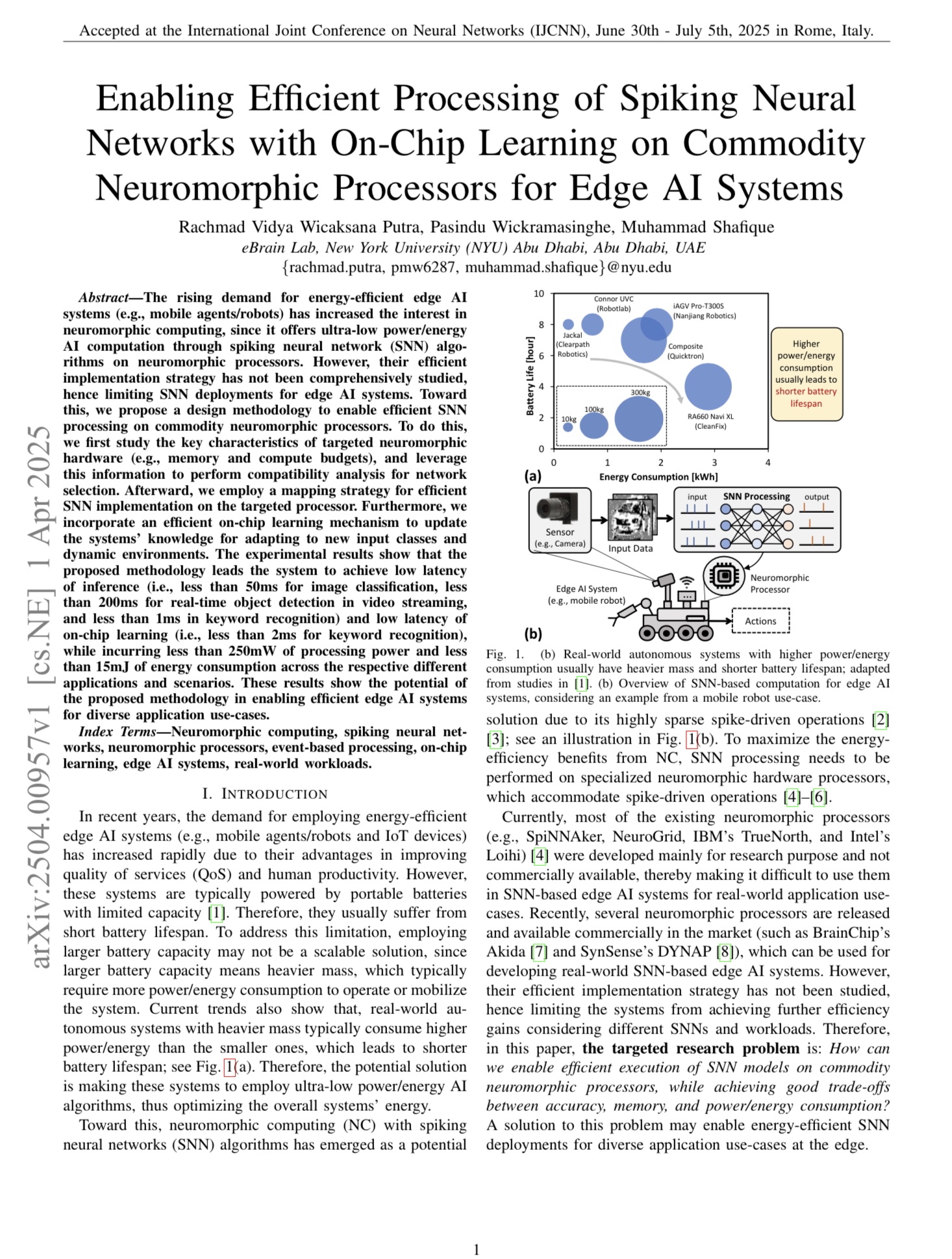 Thanks to the temporally encoded and sparsely activated communication mechanisms of SNNs — modeled after biological neural systems — these networks exhibit significantly lower energy consumption compared to traditional Artificial Neural Networks (ANNs), while also enabling faster inference times under real-time operational constraints.